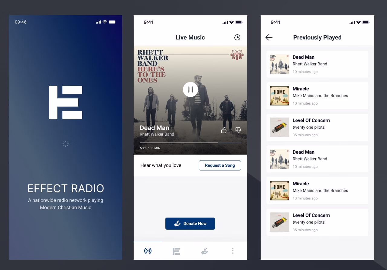 Developed key features for the Effect radio app. A nationwide radio network playin Modern Christian Music.