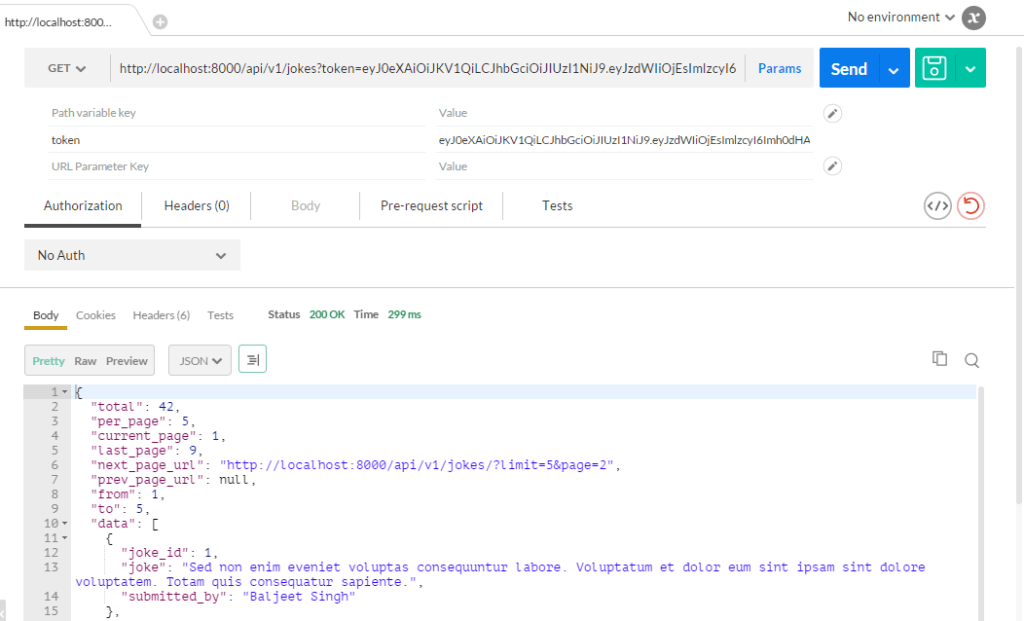 https://github.com/mbaljeetsingh/laravel5-jokes-api-with-jwt-and-pagination